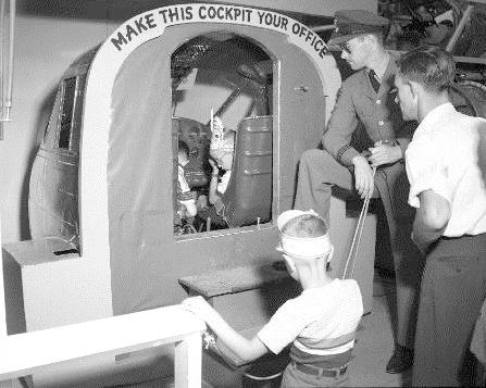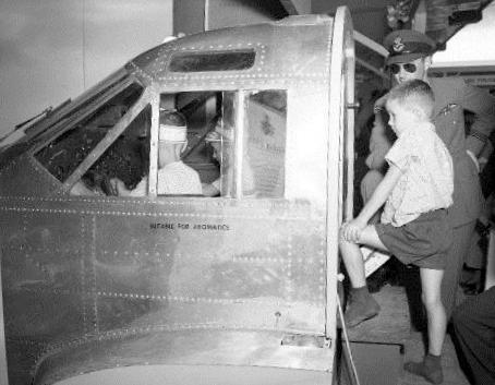 This unassuming “old school” interactive display at the museum dates back to its earliest days. It has been faithfully entertaining and educating children and adults alike since the mid 1960’s. It has no video screens or force feedback controls. At one time in the 1980’s, it was fitted with a short soundtrack loop containing engine sounds and some unmemorable radio chatter, but that has been made silent many years ago. The key fact remains that the Crane nose section has been a pillar of the collection for over five decades, and I am certain will remain such for many more to come. Generations of visitors have “slipped the surly bonds” while remaining on terra firma and without doubt it has opened the door for many to experience a lifelong love of aviation.