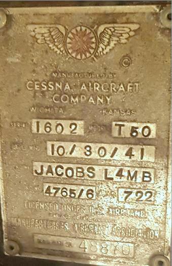 - Manufactured By Cessna Aircraft on October 30, 1941 in Wichita, Kansas U.S.A.