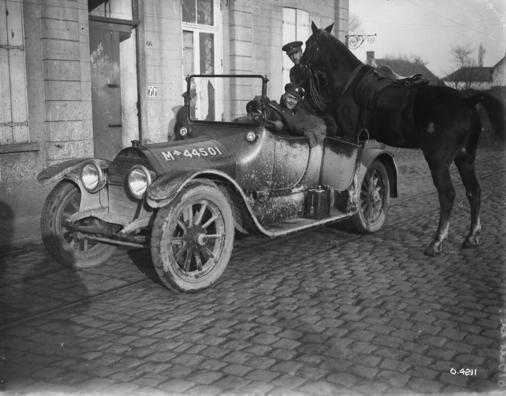 A February 1919 image of M44501 a 1915 Type 51 Seen in Bonn, Germany. The Original caption indicates that the Officer in the rear is saying goodbye to his Charger that he brought with him from Canada. (Library and Archives Canada)