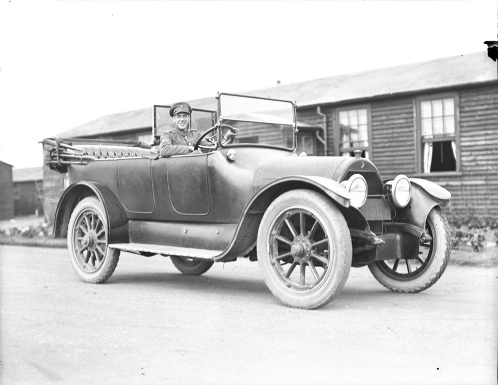 Sgt. G.H. Cross in in a nicely turned out 1916 Cadillac Type 53 staff car in England. The partially visible licence plate ends in “611K” (Library and Archives Canada)