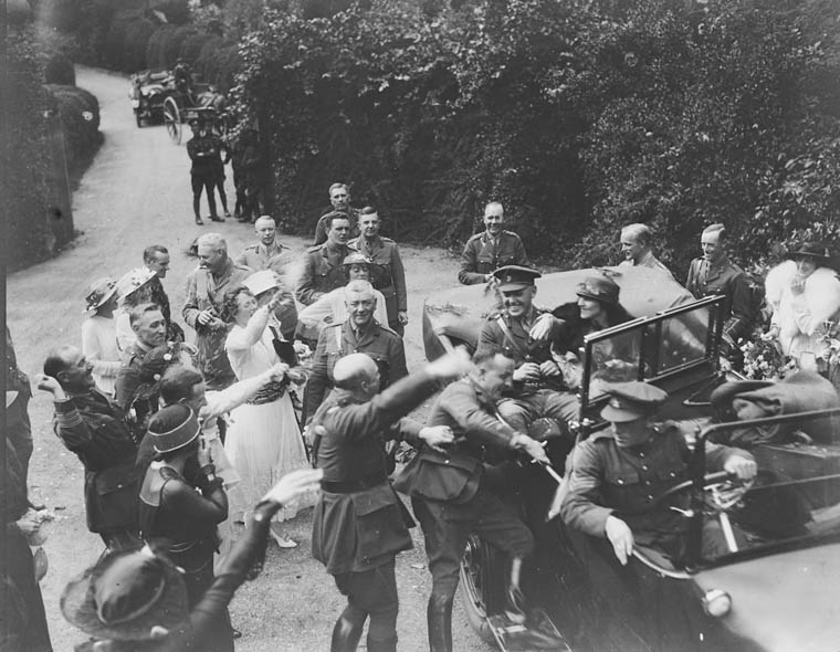 An interesting top view of the adjustable rear windscreen often fitted to Canadian Cadillacs. Normally the windscreen appears adjusted to favour access to the car from the right side rear door. This car is seen in England on the occasion of Col. Hogarth’s Wedding. (Library and Archives Canada)