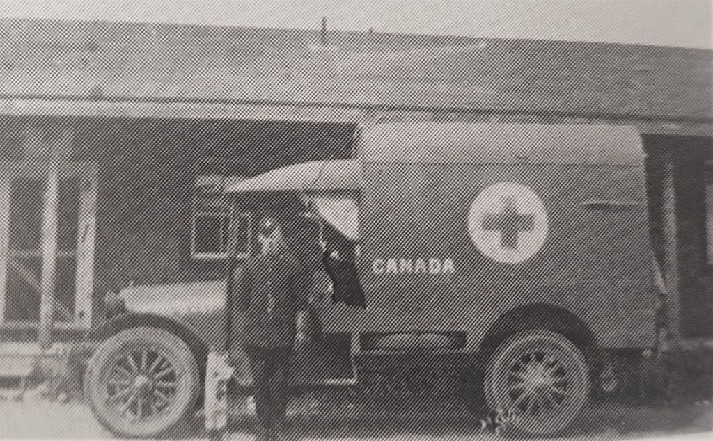 A closeup of a home service ambulance seen during training in Kingston, Ontario with the Queens University Field Ambulance during spring 1918. The Stretcher-Bearer is the author’s Great-Grandfather, Ernest Ginn, CAMC. (Courtesy J. Ginn)