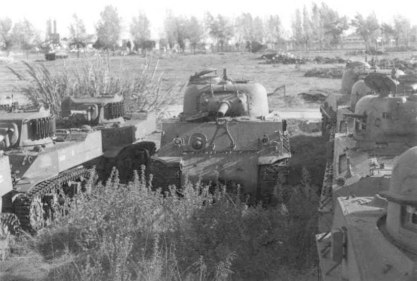 At the end of the war in Europe, it was decided by the Canadian government to leave its war weary tanks in the vehicle dumps of England and the Netherlands and to source replacement, newly refurbished models from the United States Army North American inventories. This was acknowledged as an advantageous way of obtaining newer vehicles for the smaller peacetime army with fewer costs associated with repair and shipping of those held in Europe. During the war, decisions had been made to standardize on American designs of armoured fighting vehicles and, as a result, Canada was able to purchase 294 M4A2E8 76mm(W) Sherman medium tanks and 96 M5A1 Stuart light tanks from the US in September of 1946. The Sherman tanks were new vehicles held back from wartime Soviet orders and the Stuart tanks were older examples that had previously been refurbished by American Car and Foundry for the United States Government and were being held in reserve stores at the Schenectady General Depot in New York State. The deal for the vehicles was originally agreed upon as 300 Shermans and 90 Stuarts but this seems to have been altered by the time of delivery.