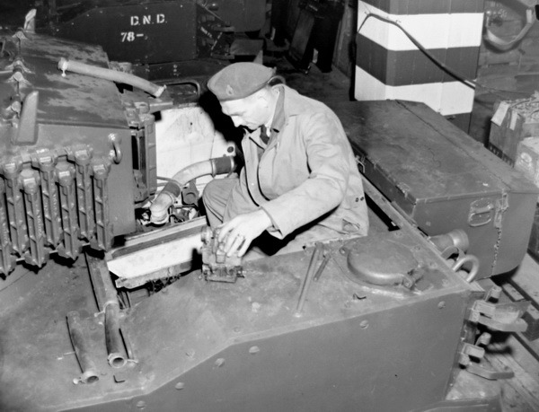 The Canadian Armoured Corps was no stranger to the Stuart light tank by 1946. They had first received small numbers of the M3 models for training in the United Kingdom and even had 7 obsolete M2A4 on strength for a short time. With the change from Universal Carriers to light tanks in the British Armoured force doctrine, in 1943 Canada received up to 77 M3A3 and later M5A1 tanks for use by reconnaissance units operating on the continent. Some of these vehicles were converted to a very effective reconnaissance variant by means of the removal of the turret and ammunition storage. By the spring of 1945 Canadian forces in northwest Europe were well equipped with the latest M5A1 models.