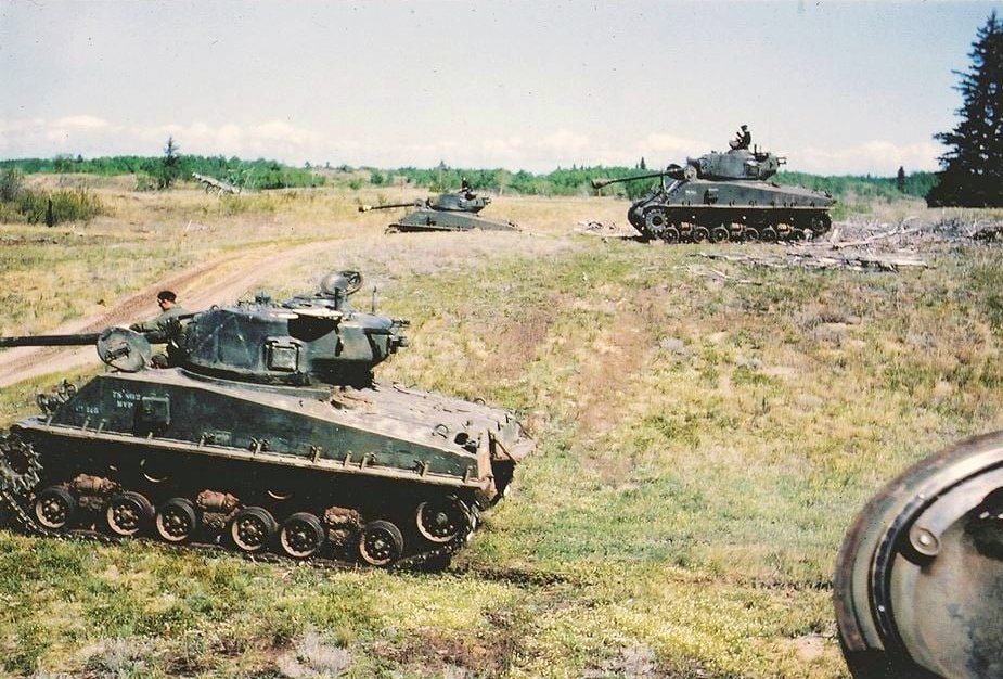 Seven tanks of the LDSH on the range in 1951. 78-787 is on the right. (Image Sean McNicholl)