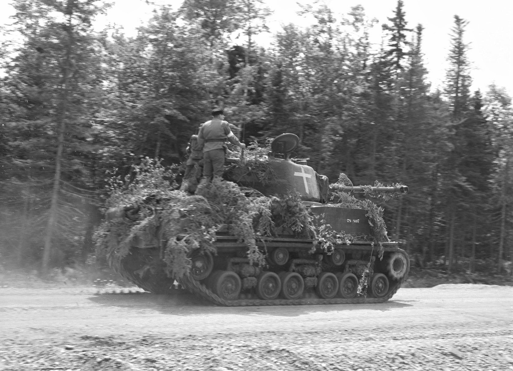 78-875 on right being used by the Grey and Simcoe Foresters while taking part in “Exercise Mandible” at Camp Meaford in October 1956. (Huron Museum)