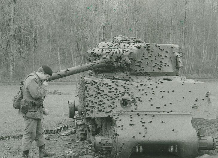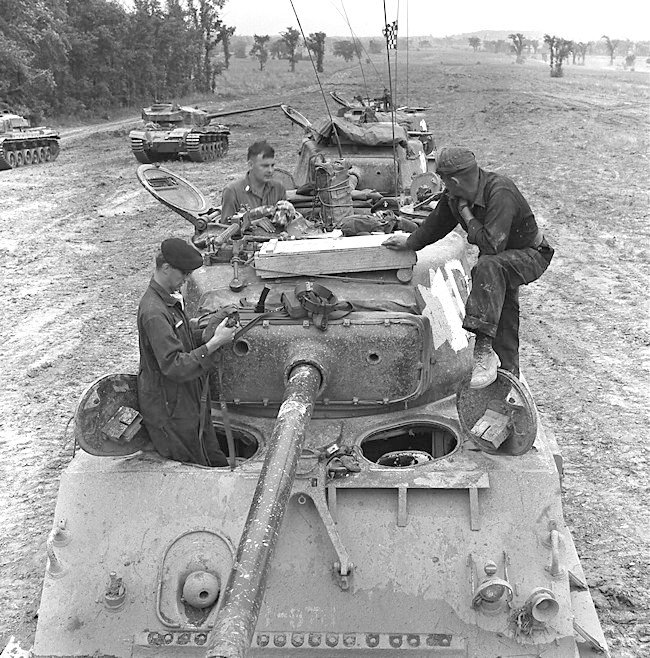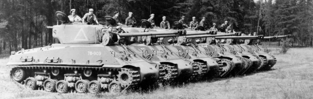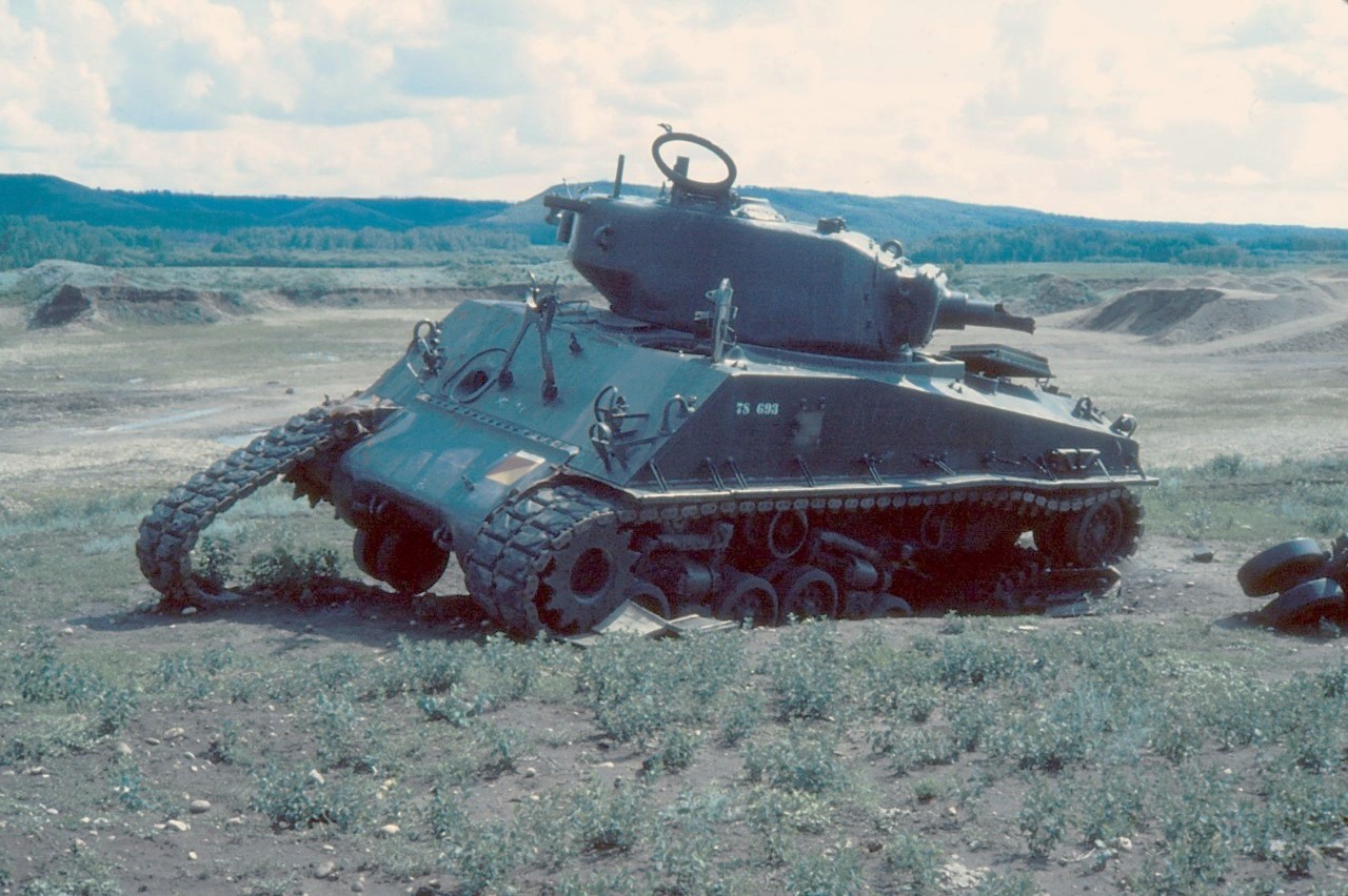 Near directly upon receipt, the regular force units of the Canadian Armoured Corps and the Armoured Corps School began conversion training onto the new Sherman’s from the older M4A1 Grizzlies. By 1947 the new tanks could be found across Canada and by 1952, even the reserve force had converted to the type. During the Korean War, the Canadian Armoured Corps left their M4A2’s in Canada, using M4A3 Sherman’s in combat supplied from US Army stocks. Modifications in use are generally limited but In 1947, three tanks had their turrets removed and were fitted with flame throwers in place of the bow machines gun. These tanks were known as Sherman Badgers.