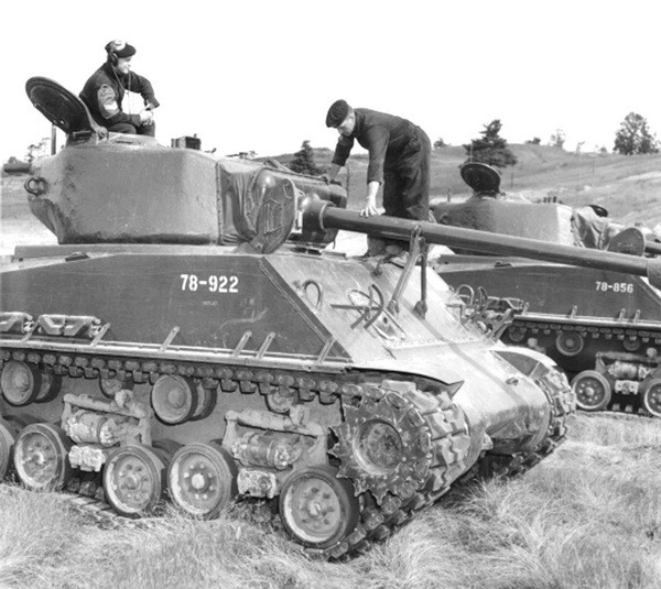 From its entry into service in 1943 until its final departure some four decades later, the Sherman was a valuable asset to the Canadian Armoured Corps. The tanks that were used overseas by Canada during the Second World War were predominantly of the M4A4 design equipped with the 75mm gun. At the end of the conflict, it was decided that the costs associated with the repair and shipping of the war weary tanks in Europe was cost prohibitive for the peacetime Canadian Army, so a purchase of 300 new Sherman M4A2(76)W tanks was made from the United States. The tanks were purchased from unfulfilled wartime Soviet orders and were equipped with twin General Motors diesel engines, Horizontal Volute Spring Suspension (HVSS) and a more potent 76mm main gun. It appears that the final number of tanks delivered to Canada differed slightly from the initial order, with 294 tanks being received at Long Point depot in late 1946.