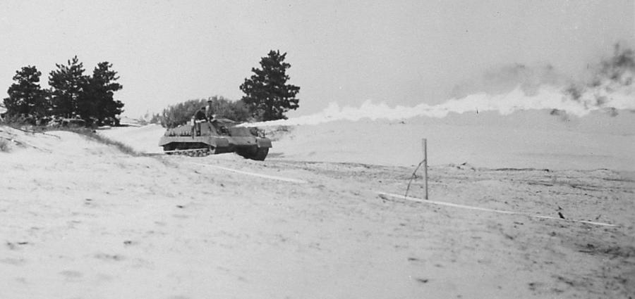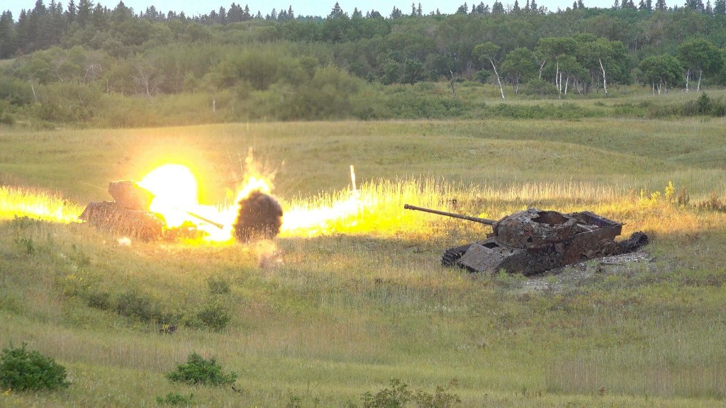A dynamic image of 78-874 firing on the range at Petawawa. (Library and Archives Canada)