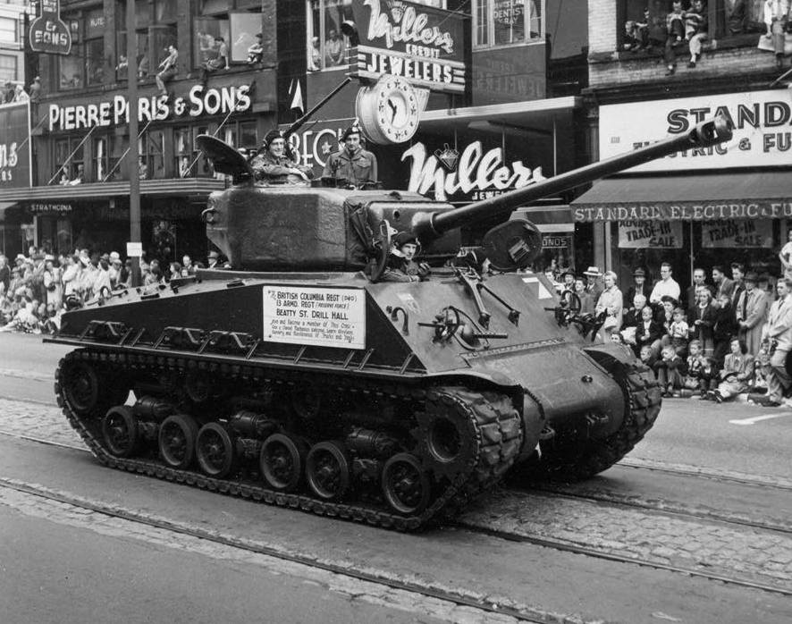 78-864 again being used for recruiting by the Fort Garry Horse in the 1950’s. Note the detail paint on the road wheel and drive sprocket fasteners! (Fort Garry Horse Museum and Archive)