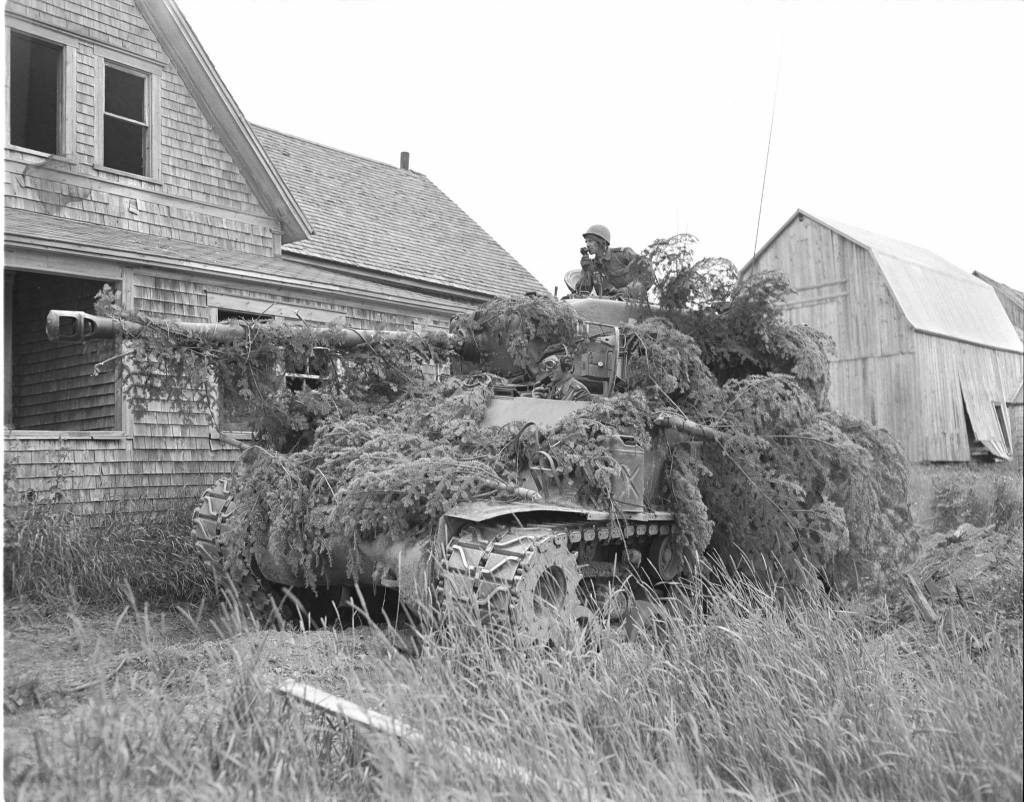 By 1965, the Sherman’s were being retired from armoured units and many were replaced with Jeeps. The last tanks were converted to hard targets or monuments with few leaving the DND inventory in disposal sales. The Ontario Regiment was the last unit to use the Sherman’s in training. As late as 1971, they retained 3 at Oshawa in the three colour camouflage pattern, commonly seen on Canadian army vehicles of the period.