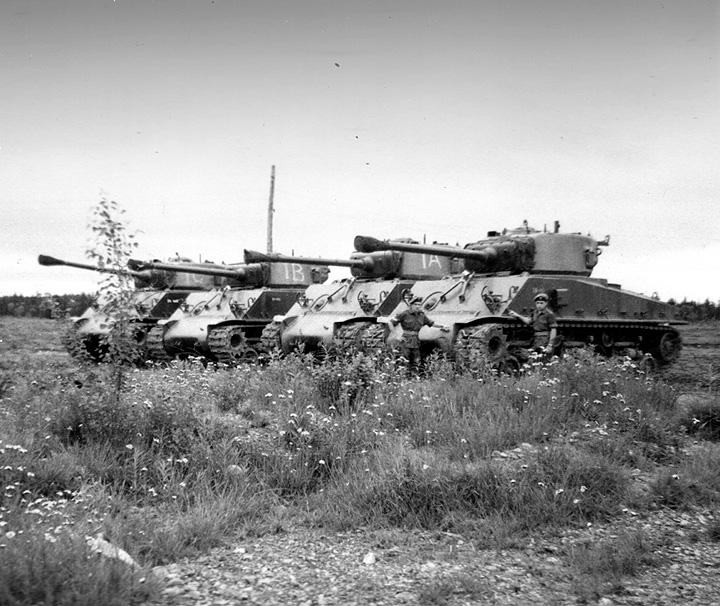 A squadron of Halifax Rifles tanks. 78-737 is second from left. (Halifax Rifles Museum and Archives)