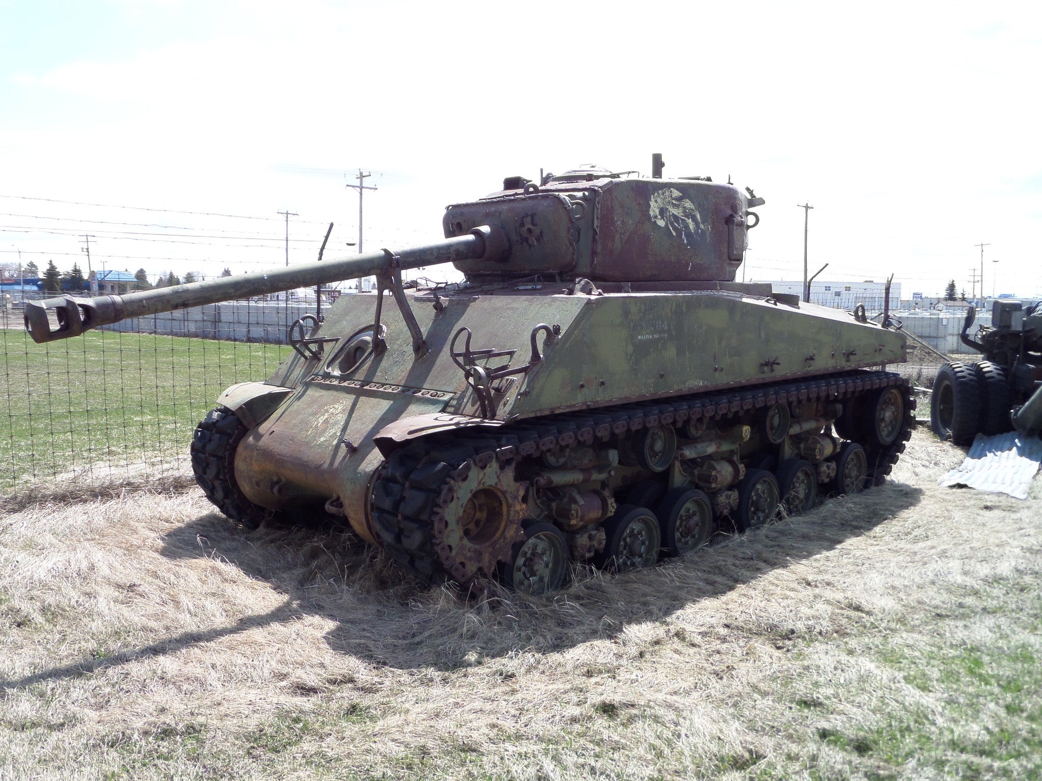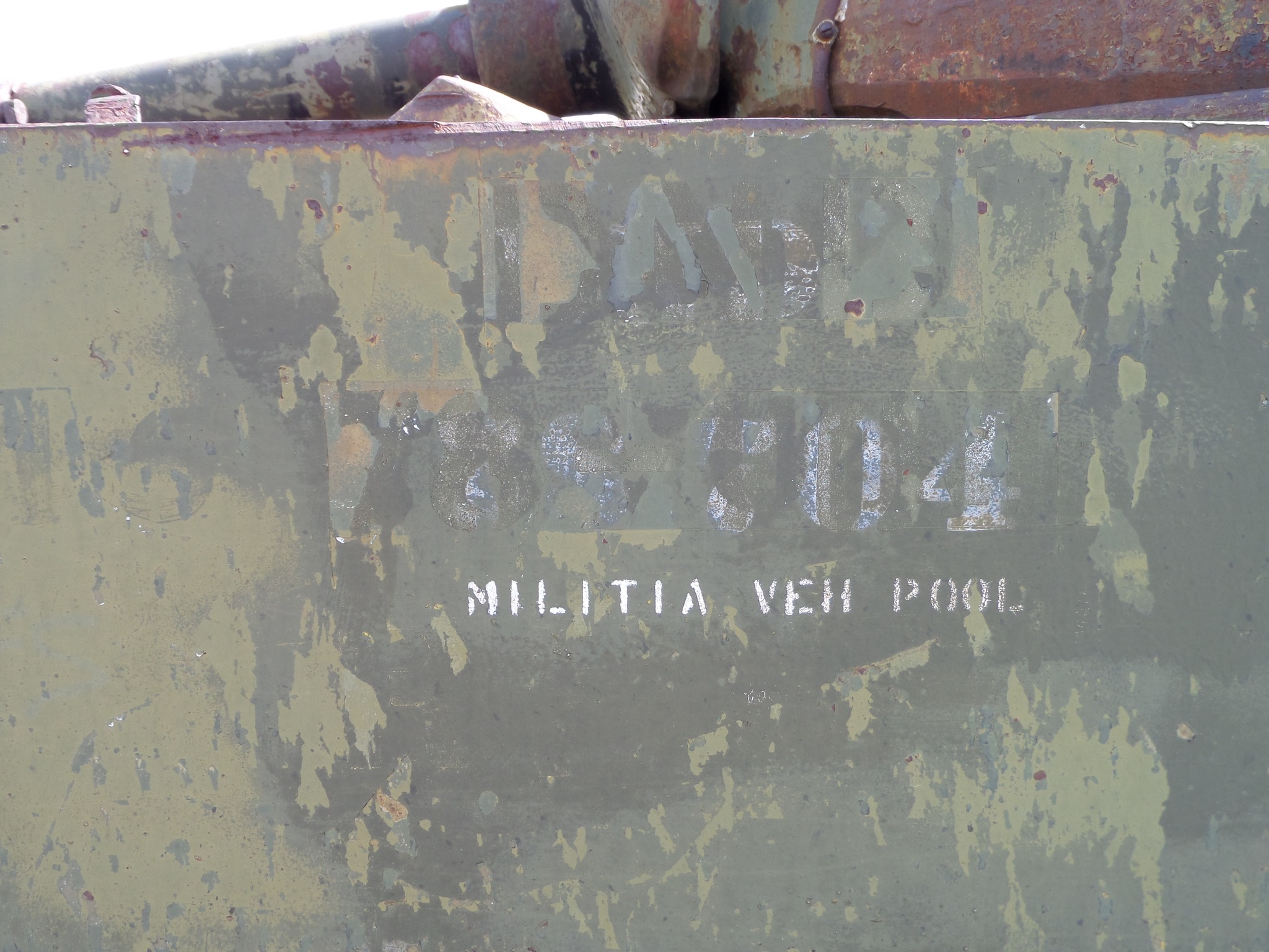 | 78-704 | 65027 | ![]() 78-704 shown in storage at the Stan Reynolds Museum. Note the white 14CH “bucking bronco” markings reappearing under the faded paintwork on the turret sides and final drive. (courtesy Hanno Spoelstra) ![]() At least two layers of the “DND 78-704” marking are visible along with the “Militia Vehicle Pool” marking. (courtesy Hanno Spoelstra) Feb 1962: 14th Canadian Hussars, Swift Current May 1965: Saskatchewan Area Pool Unknown date: Acquired by John “Jack” Guthrie of Calgary, Alberta. 1997: Acquired by the Canadian War Museum and immediately exchanged to the Stan Reynolds Musuem in Wetaskiwin, Alberta for a former Canadian Army M1917 6-ton tank. 2023: Reacquired by the Canadian War Musuem and transported to Ottawa, Ontario. | |